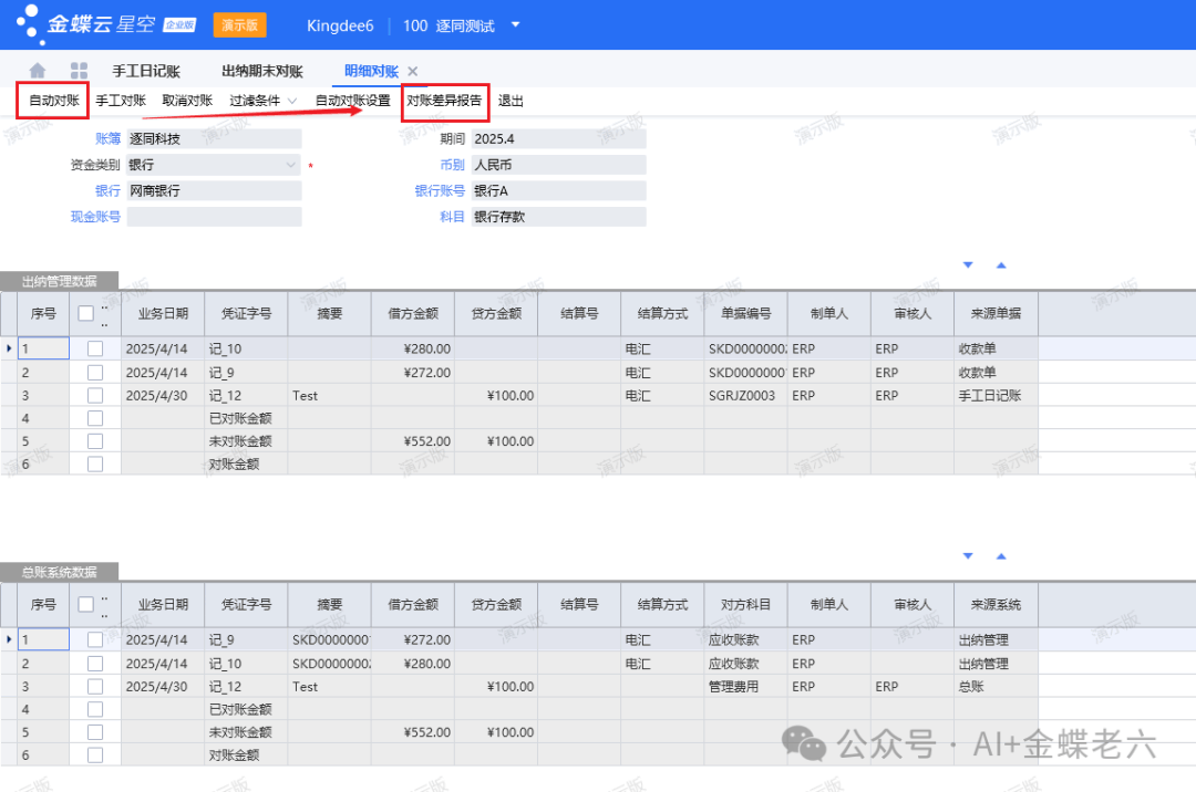 ![]() 五、再次进行对账差异是不是没有了或者变少了。