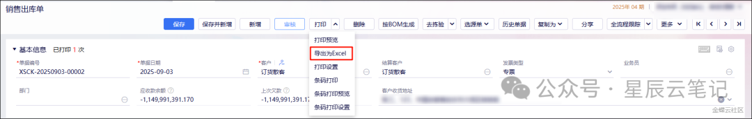 列表支持单张单的“导出为Excel”以及多张单合并分录后的“合并导出为Excel”