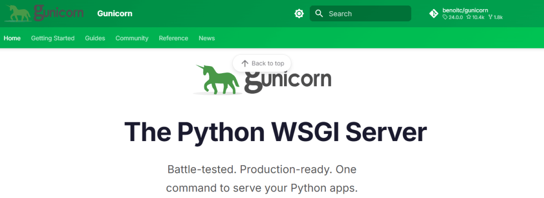Green Unicorn 是一个用于 Unix 系统的 Python WSGI HTTP 服务器,采用预派生工作模式,能够稳定高效地运行 Python Web 应用,是 Django、Flask 等框架在生产环境部署的事实标准。