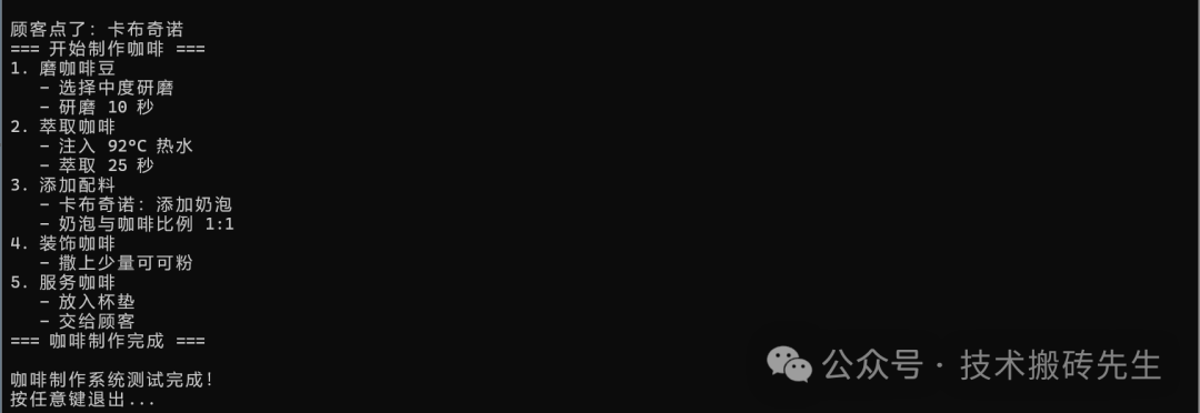 让我们通过一个咖啡制作系统来体验模板方法模式的魅力,支持美式、拿铁和卡布奇诺的制作。