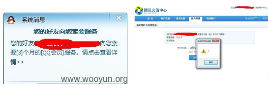 QQ某些自带的服务,也是会发送一个右下角弹窗的,比如找好友索要QQ会员服务。有没有想过,有一天你点开了好友的索要请求,就自动帮对方支付了3个月的QQ会员?当然,你的cookies也会被对方窃取过去。这样的事情确实出现过!自从笔者看到这个漏洞后,慎点,慎点!