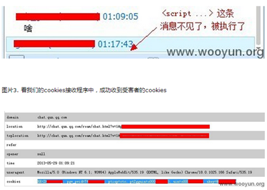 漏洞链接:腾讯QQ群持久xss攻击(可执行js窃取cookie挂马等已经有人利用)