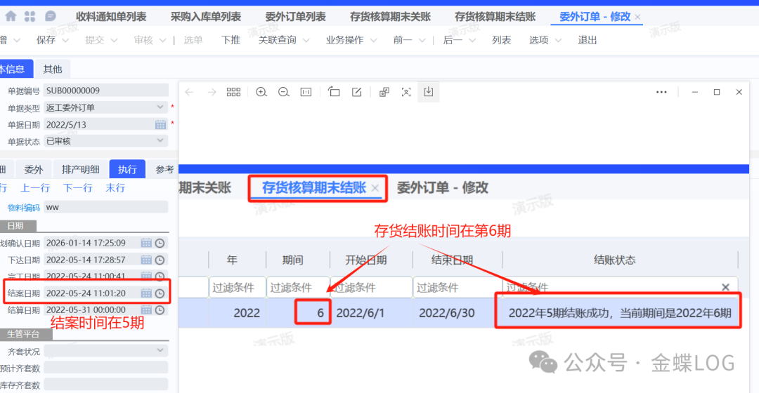 如果说订单还没到【结算】状态,说明工单的结案时间还在存货时间之前