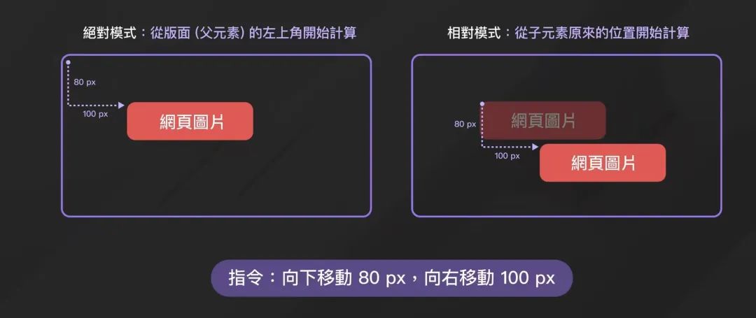 使用相对模式时,网页元素会从它原本的位置进行移动