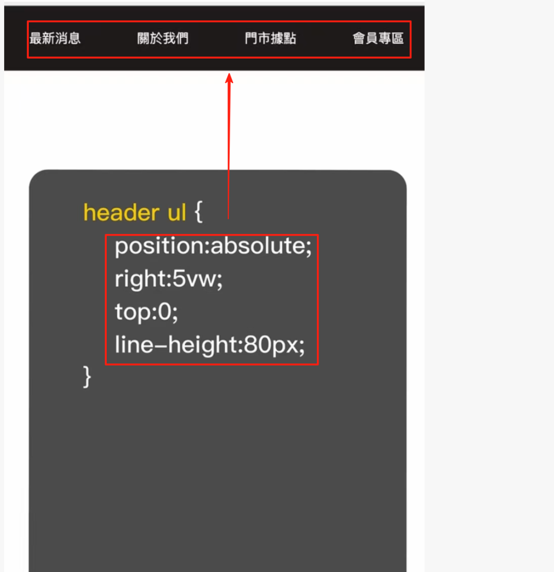 这里,我们把<ul>标签,即网站的导航栏设为“绝对模式”