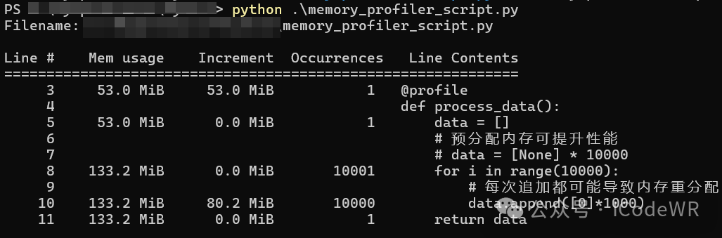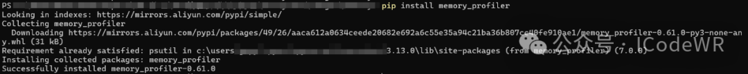 安装pip install memory_profiler :