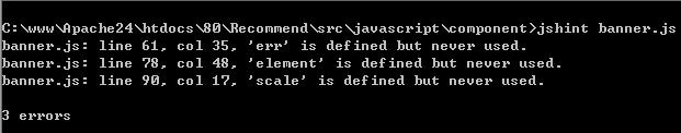 命令行下直接: jshint myfile.js 就ok,命令行里就可以显示错误或者警告。