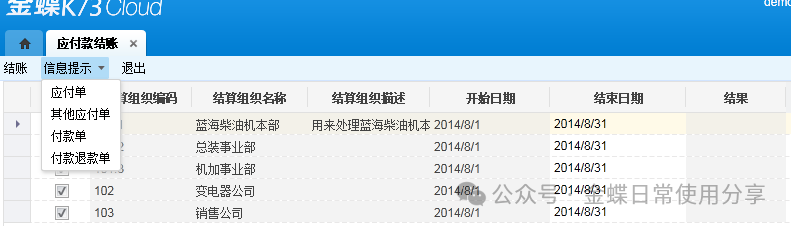 申请单未审核不允许关账、报销单未审核不允许关账、转移单未审核不允许关账