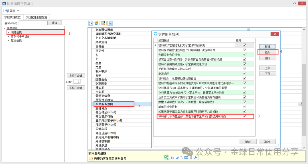 修改这个规则思路非常简单,我们需要保证参加共耗材料分配时对应物料分录行勾选“参加费用分配”,不参与共耗材料分配时对应物料分录不勾选参数,一般我们采用以下两种方法进行配置。