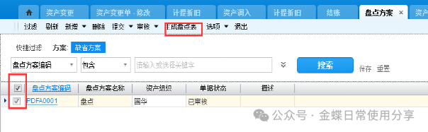 【功能菜单】:【资产管理】->【固定资产】->【资产盘点】->【盘点方案】