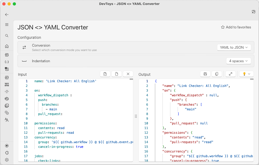 • 数据转换与编码/解码:快速进行 JSON 与 YAML 之间的转换,HTML、URL、Base64 等编码解码操作。