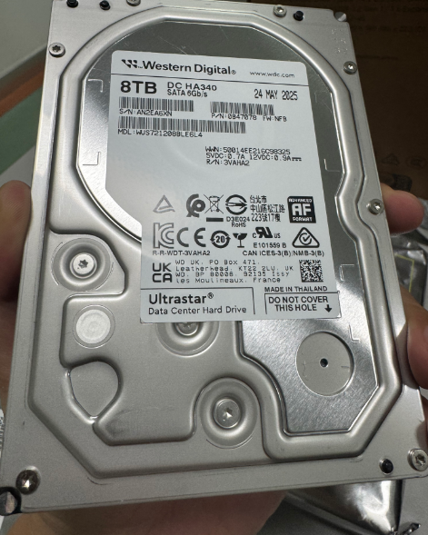 客户一个DS224+,外加4个8T WD企业硬盘。可以看到这是WD的企业硬盘,这个硬盘是泰国生产的,我觉得泰国的生产工艺不太行,虽说是全新未拆的,但是拆开后硬盘表面上还是有很多划痕。工艺的确不能和我们比。然后再把硬盘支架的卡条安装回去,固定好硬盘就可以了。这时要确定一下,硬盘如何安装到NAS服务器的硬盘架子中。我们要确定好,硬盘的接口位置。NAS中的硬盘接口在下面,所以我们安装硬盘,也需要将硬盘的接口位置往下安装进去,还需要确定一下,正反,如果反了,是不好直接插进去的。硬盘安装完成之后,我们就需要为这NAS安装操作系统了。首先我们需要到官方下载安装系统软件。