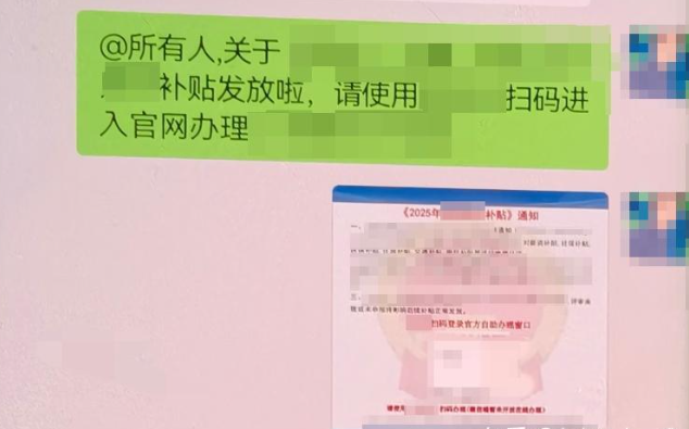 另一类是“冒充上级精准诈骗”。这是更具针对性的社会工程学攻击:犯罪分子会先通过被控制的电脑,收集企业内部信息(如领导姓名、职位、沟通习惯),再要么直接操控领导的社交账号,要么伪造 “高仿账号” 单独创建新群,将财务人员、部门管理员拉入群内。 随后,他们会发送伪造的“国家财政补贴申请页”“员工绩效补贴发放通知”“紧急薪资调整补充方案” 等虚假网页链接,要求财务人员 “立即按流程转账至指定账户”“填写银行账户信息用于补贴发放”。 由于群聊身份、通知内容高度仿真,且抓住财务人员对“上级指令” 的配合心理,不少受害者会未核实便执行转账操作,或泄露企业账户、员工银行卡等敏感信息,最终导致企业资金损失,或进一步扩大数据泄露范围。