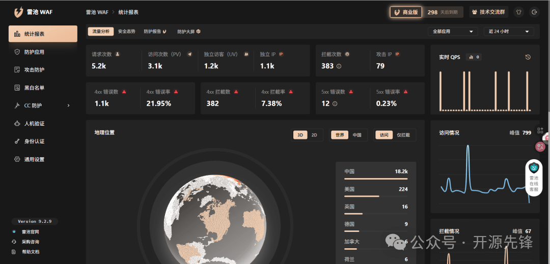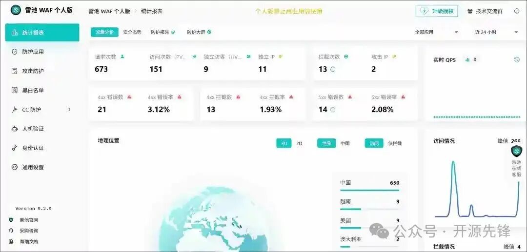 与云 WAF 不同,它完全运行在你自己的服务器上,让你对流量和日志拥有绝对控制权,同时也不需要把所有流量托管给第三方云服务。 功能特性