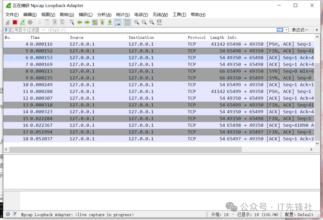 wireshark抓包完成,就这么简单。关于wireshark显示过滤条件、抓包过滤条件、以及如何查看数据包中的详细内容在后面介绍。