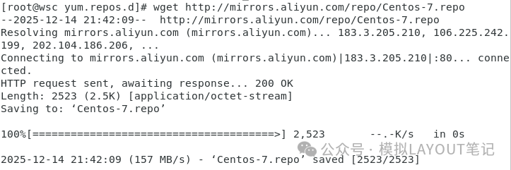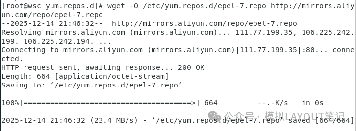 步骤五:使用阿里开源镜像提供的 epel 源 wget -O/etc/yum.repos.d/epel-7.repo http://mirrors.aliyun.com/repo/epel-7.repo
