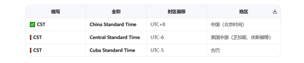 不过这里要小心,CST有很多,可以代表中国、也可以代表美国中部。