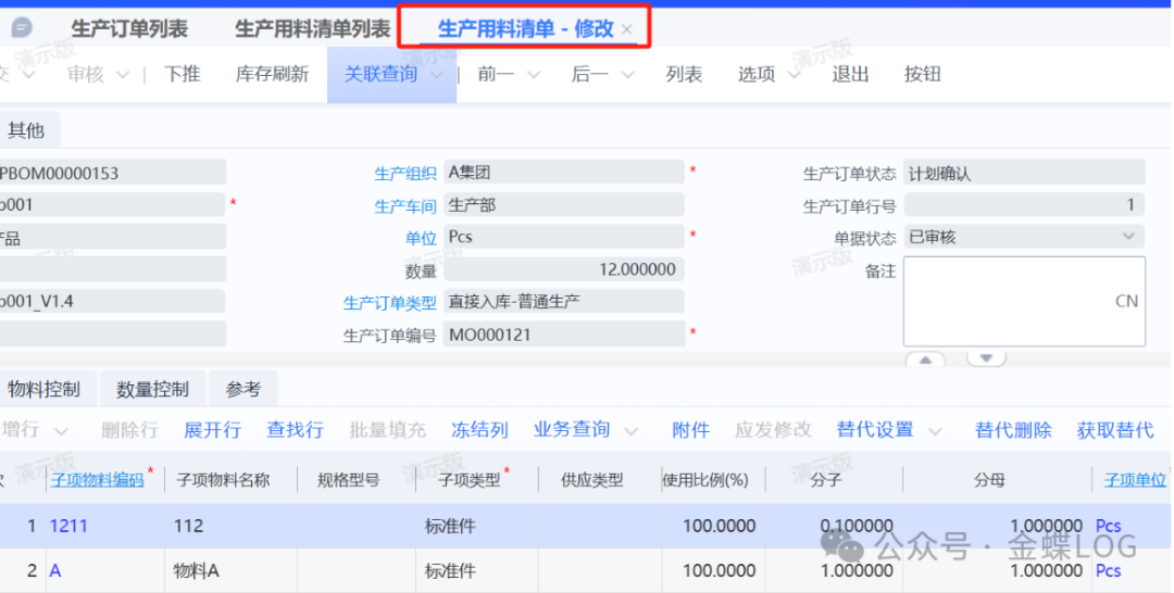 [点晴模切ERP]【金蝶云星空】生产用料清单生成原理和6种修改方式