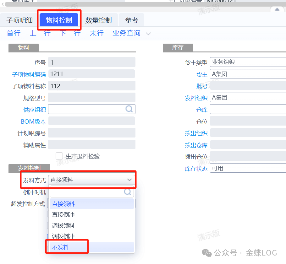当然从BOM携带过来的物料是不可以删除的,如果这些物料不想发料,可以修改【发料方式】为“不发料”或【分子】改为0