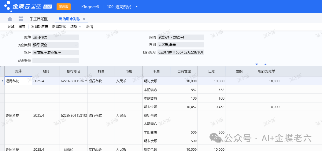 [点晴模切ERP]出纳期末对账总出错?手把手教你玩溜金蝶云星空出纳期末对账