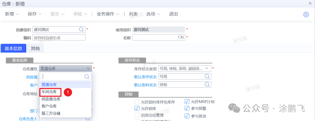 设置车间对应的仓库,以提供调拨使用,这里要注意,仓库的需要设置成车间仓库类型。