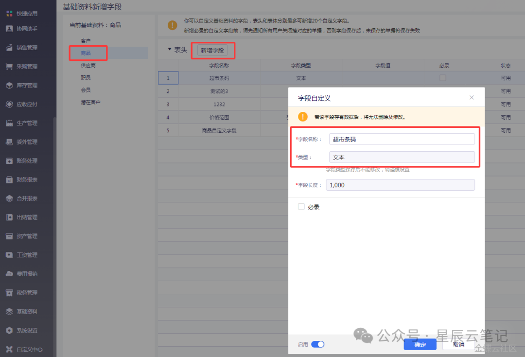 [点晴模切ERP]金蝶云·星辰单据新增字段常见问题
