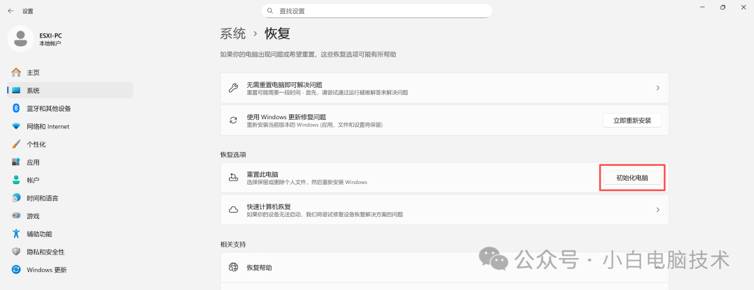 小白见过的很多90%以上的系统问题都可以通过重置系统解决,根本不需要重装系统。而且对于那些预装正版 Office 等软件的电脑,重置能保留这些授权信息,如果重装系统则可能导致软件需要重新激活。(虽然激活也不是什么难事)咱们在重置系统之前,建议做好下列准备工作,避免数据丢失和后续麻烦。第一是数据备份。即使选择“保留我的文件”选项,某些安装在系统盘的程序数据仍可能丢失。建议将重要文件备份至外部硬盘、U盘或云端存储。第二是记录关键软件的激活信息,特别是那些需要序列号激活的专业软件。检查设备驱动程序情况,特别是对于小众硬件,最好提前下载对应驱动备用。(或者备份C盘路径下的【C:\Windows\System32】整个文件夹,这个文件夹是电脑驱动存储的位置)确保电脑连接稳定电源,笔记本电脑需接通电源适配器,防止重置过程中断电导致系统损坏。系统重置的具体步骤因 Windows 版本略有差异,以下是通用流程(以Win11为例):按照自己的需求选择【保留我的文件】或者【删除所有内容】