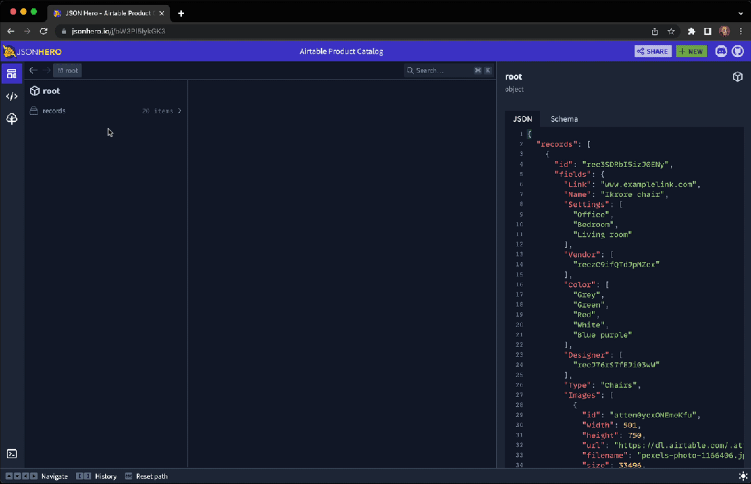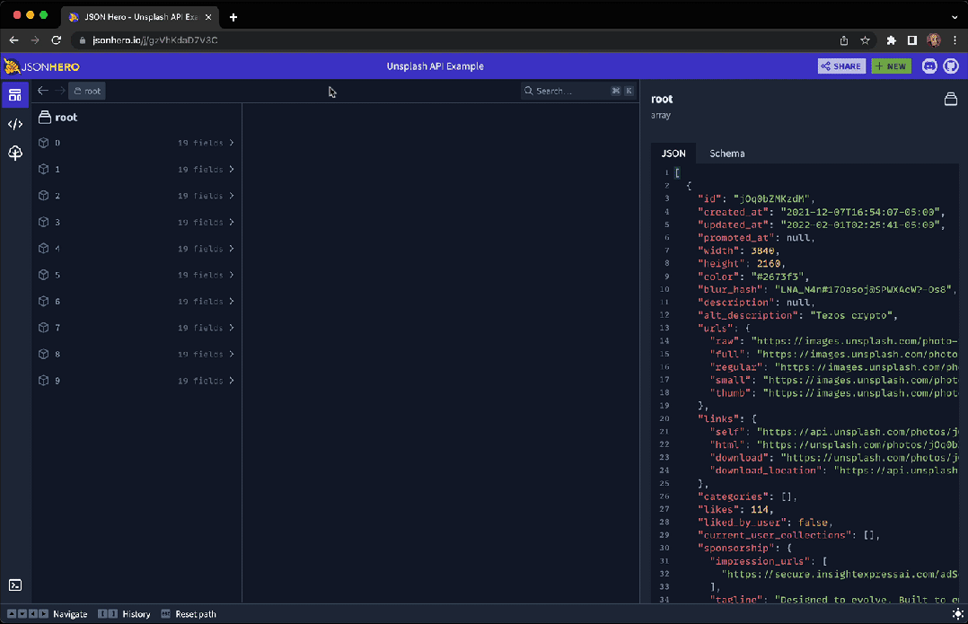 JSON Hero通过提供简洁美观的界面,并配备了丰富的额外功能,使阅读和理解JSON文件变得轻松。它的主要功能特点包括: