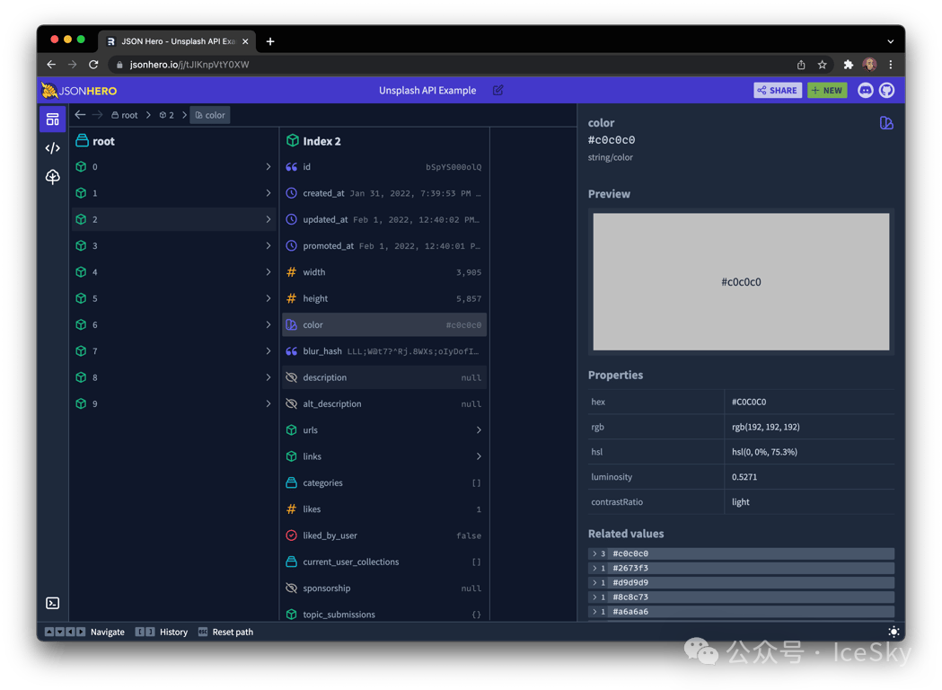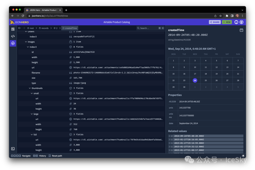 智能识别:它能自动认出字符串里的图片 URL、网站链接、日期时间,甚至颜色值 —— 遇到图片链接直接显示预览,看到日期自动格式化,不用再手动复制链接打开查看,效率直接翻倍