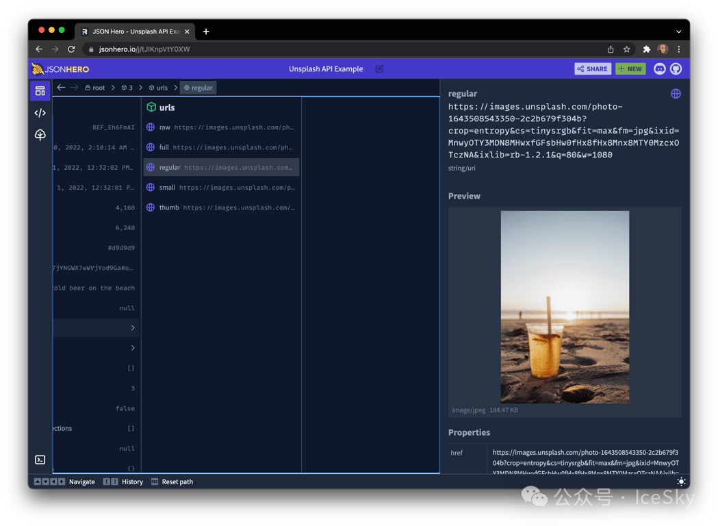• 自动推断 JSON 的内容、类型并根据不同的类型提供不同的预览