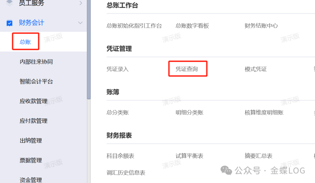 这里查询出来的凭证就是所有模块的数据,跟下面第④个总账路径查出来的数据是一样,只是这里多了一个【业务凭证的查询】