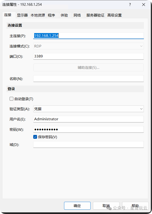 创建或编辑一个 RDP 连接后,进入 Connection Properties(连接属性)