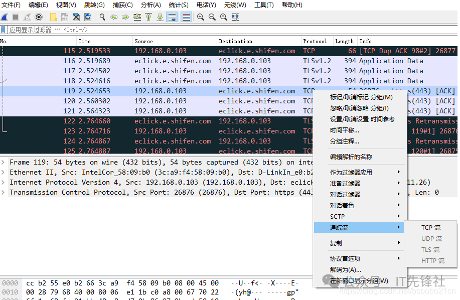TCP流是基于TCP连接的有序数据序列,是网络中可靠传输数据的“通道”。它会按发送顺序排列数据,通过重传、确认机制避免丢失,还支持双向传输——比如客户端发请求、服务器回响应,都能在同一条TCP流里完成。像浏览网页、传文件时,应用数据都会封装成TCP流传输,确保信息完整、有序到达。打开捕获文件;在一个协议为TCP的包上右...
