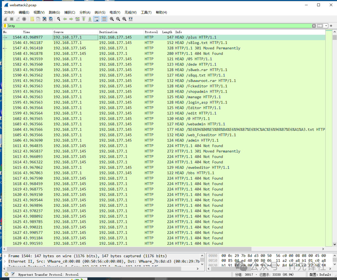 介绍关键技术点:Wireshark助力Web入侵溯源Wireshark是一款强大的网络协议分析工具,它能够捕获并解析网络流量,帮助安全专业人员深入洞察网络通信的细节。在Web入侵溯源中,Wireshark可以捕获HTTP/HTTPS、DNS、FTP等协议的数据包,通过分析这些数据包,安全人员可以追踪攻击者的行为路径,识...