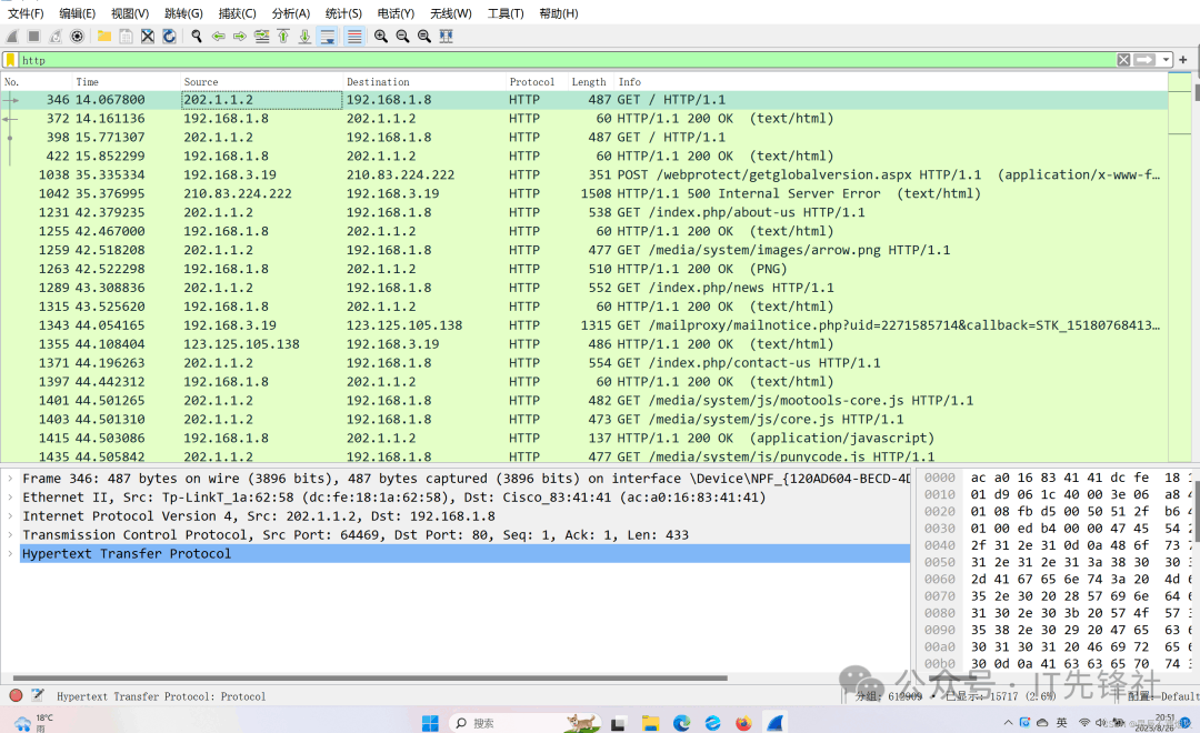 Wireshark开始抓包示例Wireshark是一款免费开源的网络数据包分析工具,能捕获电脑或网络中的数据传输包,还能解析包内内容,比如源地址、目标地址、传输协议和具体数据。不管是新手学网络原理,还是工程师排查网络卡顿、丢包等问题,都能用它。它支持Windows、Mac等系统,操作门槛可高可低,是网络领域超常用的工具...