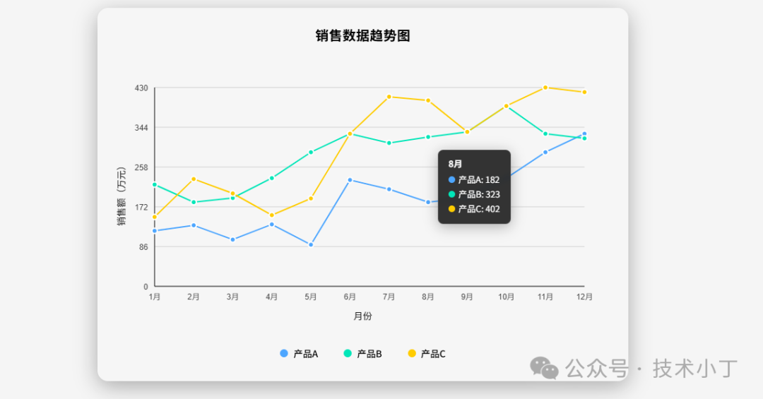 在现代前端开发中,数据可视化是提升用户体验的重要手段之一。虽然像ECharts这样的成熟库已经能满足大部分需求,但亲手实现一个简易版本的图表绘制工具不仅能加深对图形编程的理解,也能带来极大的成就感。本文将使用HTML、CSS和JavaScript实现一个类似ECharts的交互式折线图。效果演示折线图支持多个系列同时展...
