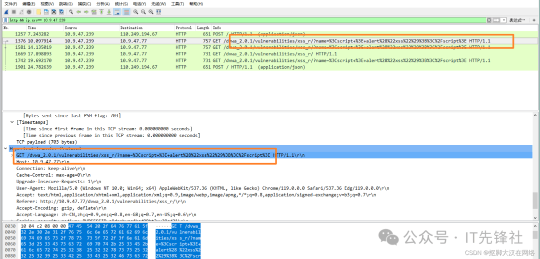 介绍流量分析技术流量分析技术是通过分析网络数据包来识别和理解网络流量的行为和特征。在XSS注入攻击中,流量分析可以帮助识别恶意流量,例如包含恶意脚本的数据包。使用Wireshark等抓包工具,可以捕获网络中的数据包,并分析其中的内容,从而发现潜在的XSS攻击迹象。Wireshark抓包工具Wireshark是一款功能强...