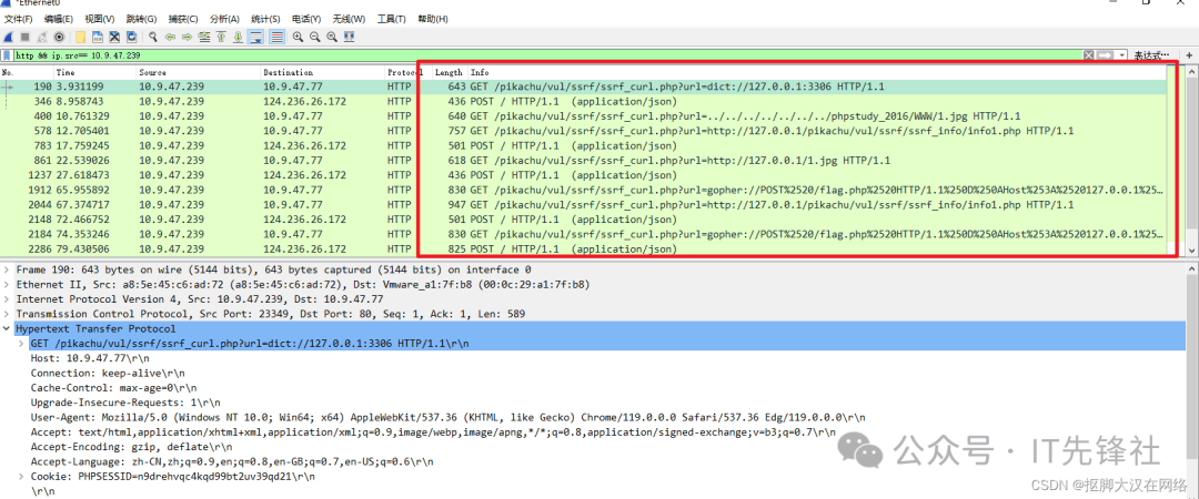 介绍流量分析Wireshark通过捕获网络数据包,帮助安全分析师识别异常流量模式。在SSRF(服务器端请求伪造)攻击中,攻击者利用服务器配置缺陷,通过服务器发起对内部资源的请求。通过Wireshark分析目标服务器的出站请求,可以筛选出指向非标准端口或内部IP地址的HTTP/S请求,这些请求可能是攻击迹象。例如,可以...