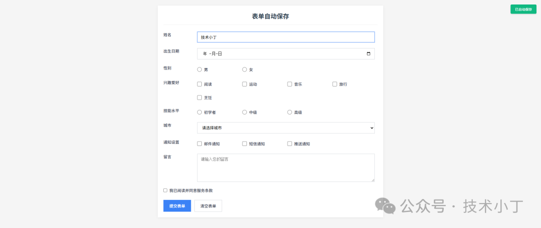 用户在填写表单时,经常会遇到意外关闭页面或浏览器崩溃的情况,导致长时间的输入成果丢失。通过实现表单自动保存功能,可以在用户输入时实时保存数据到本地存储,当用户意外离开后重新进入页面时,能够恢复之前填写的内容,大大提升用户体验。这种机制特别适用于注册表单、问卷调查、订单填写等需要用户投入时间的场景。本文将介绍如何使用HT...