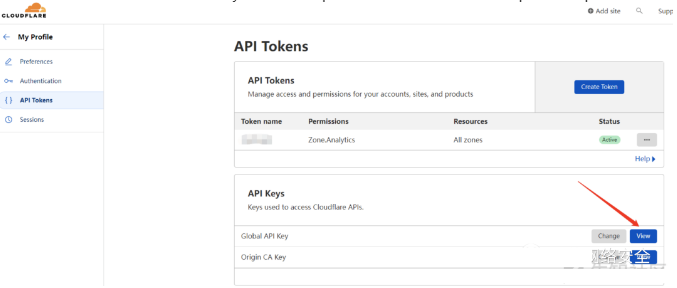 在等待期间我们可以先设置API Keys。先到 https://dash.cloudflare.com/profile/api-tokens