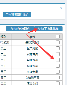 勾选需要打印工卡的员工,点击上方“作卡”,可勾选多个。