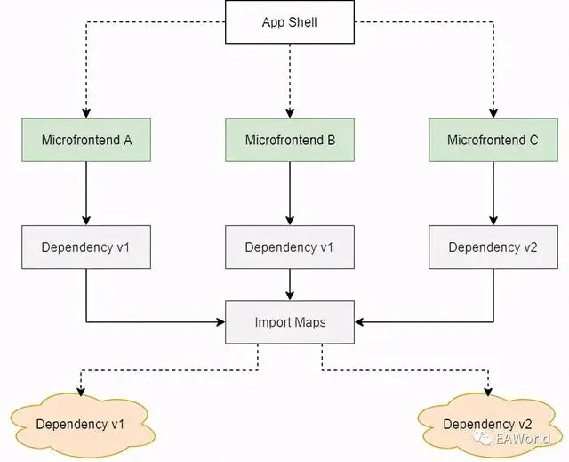 Single SPA的核心是利用不同的URL路由来加载远程组件,它可以和Webpack(打包时构建依赖)或者Import Map(运行时使用浏览器导入依赖)一起工作。注意,不要在你的微前端中混用两种依赖机制。