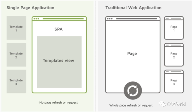 SPA是一个Web应用程序,仅包含一个HTML页面。提供动态更新,它允许在不刷新页面的情况下与页面进行交互。利用单页应用程序,可以显着降低服务器负载并提高加载速度,从而获得更好的用户体验,因为SPA仅在先前加载整个页面时才按需导入数据。