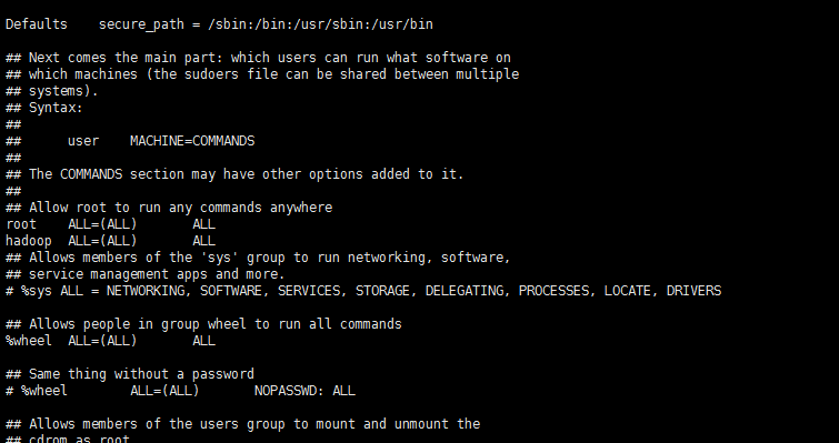 b.可为 hadoop 用户增加管理员权限,方便部署,避免一些对新手来说比较棘手的权限问题