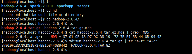 cat hadoop-2.6.4.tar.gz.mds | grep 'MD5'