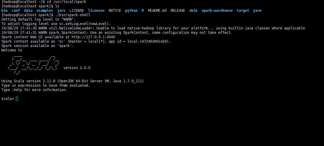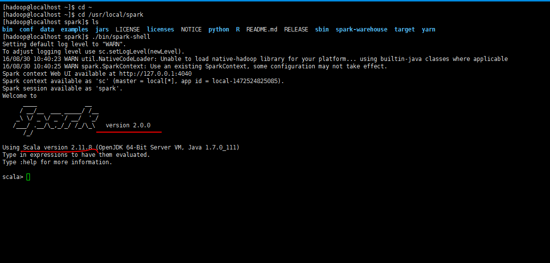 注意,spark的使用部分,不特殊说明,都是以hadoop用户登录操作的。