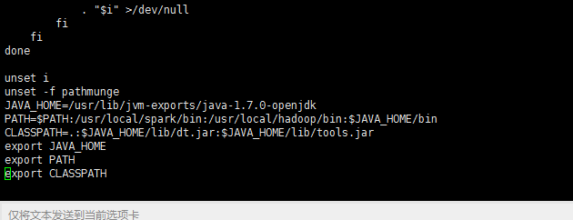 其中JAVA_HOME是你的java安装路径。其中PATH这个参数是以冒号:来分割不同的项的,后面我们hadoop和spark的环境变量配置也要修改这个参数。