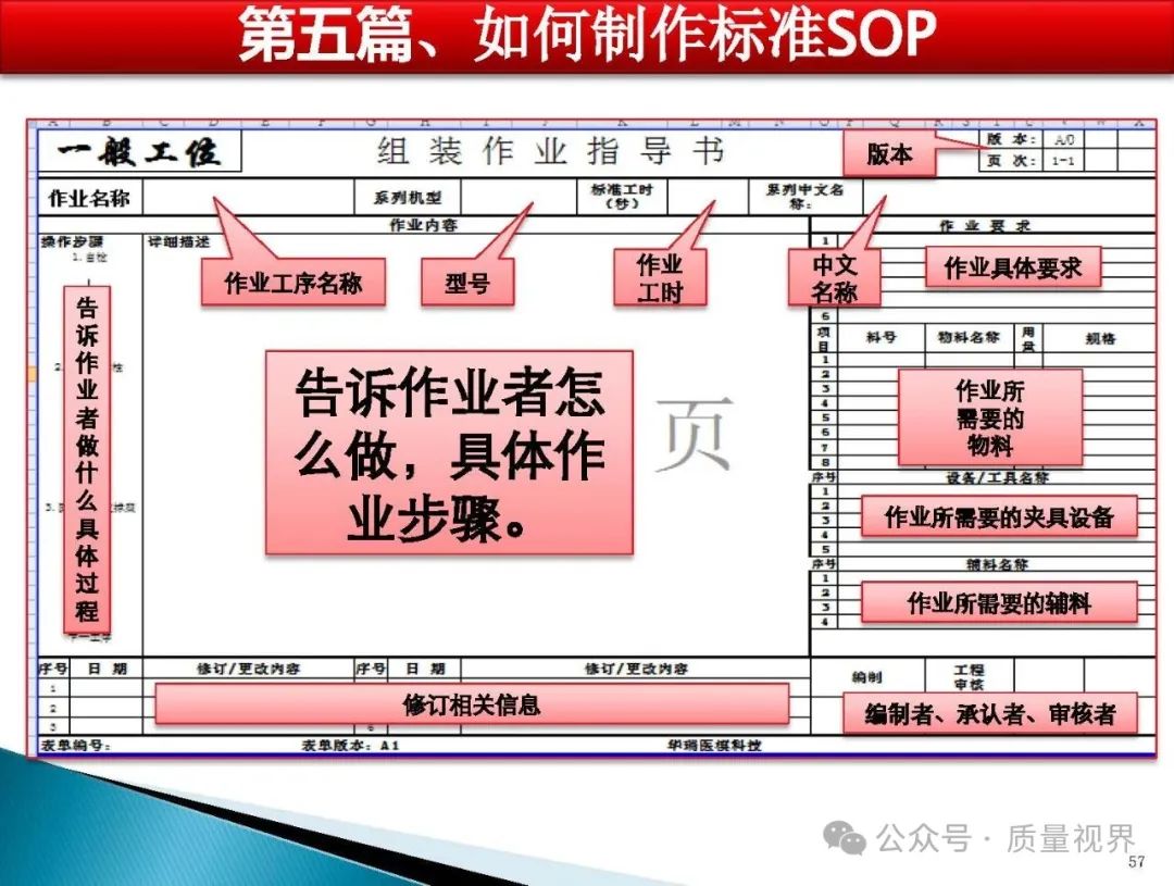 SOP 的本质是什么? SOP(Standard Operating Procedure,标准作业程序)的本质是将重复性工作的最佳实践转化为可执行、可追溯的标准化流程。它不是简单的 “操作步骤清单”,而是对工作逻辑的系统性梳理 —— 包含 “做什么(目标)、怎么做(步骤)、谁来做(责任)、用什么做(工具)、注意什么(风险)” 等核心要素,本质上是组织经验的固化与传承载体。 为什么要标准化? 标准化(包括 SOP 的落地)的核心目的是解决 “不确定性” 带来的效率损耗与风险,具体可从 3 个维度理解: 1. 对 “执行层”:降低操作门槛,减少失误