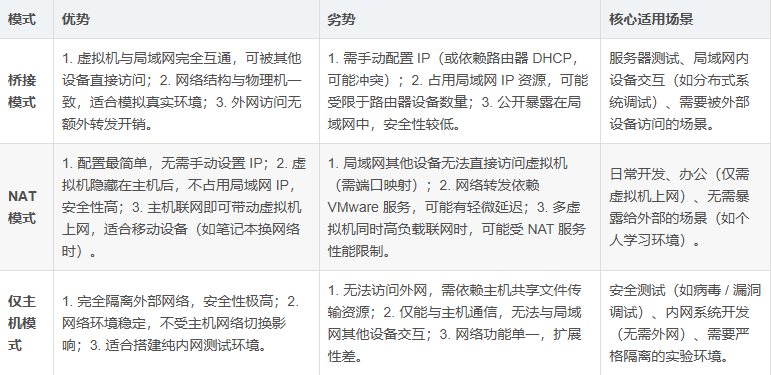 4.三种网络模式配置步骤对比表