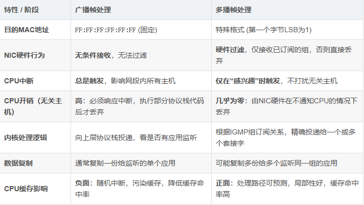 | 前言在计算机网络的世界里,单播、广播和多播是三种基本的数据传输方式。对于网络工程师和系统开发者来说,理解主机如何处理这些不同类型的数据帧至关重要,尤其是广播(Broadcast)和多播(Multicast)。表面上看,它们都实现了“一对多”的通信,但从底层硬件到操作系统内核,主机在处理这两种帧时,其CPU的参与度和工作...   |